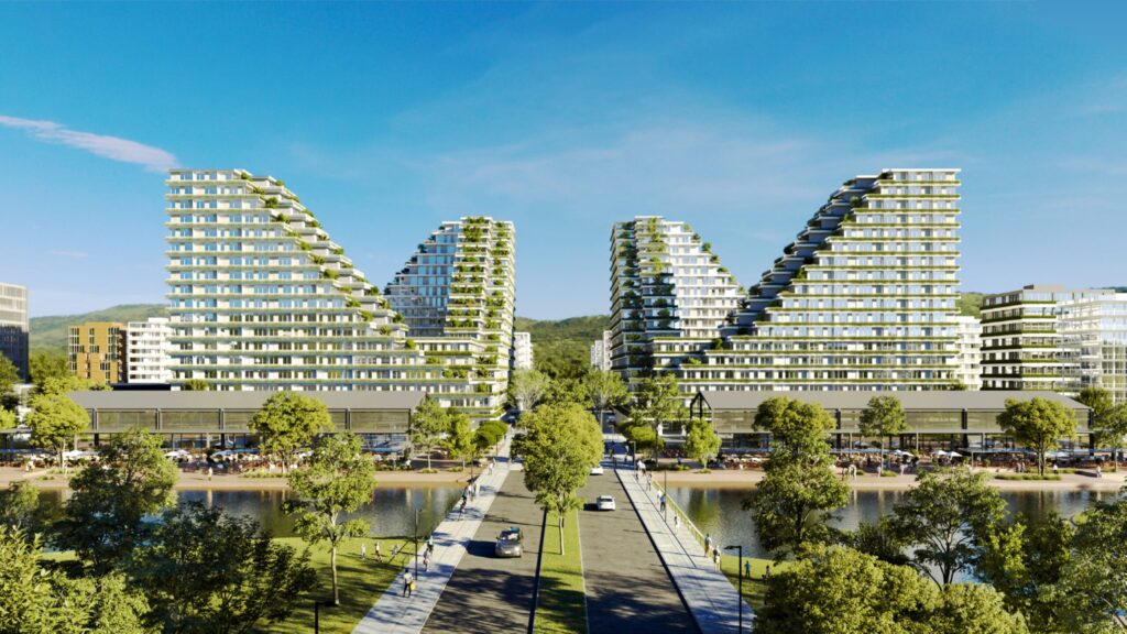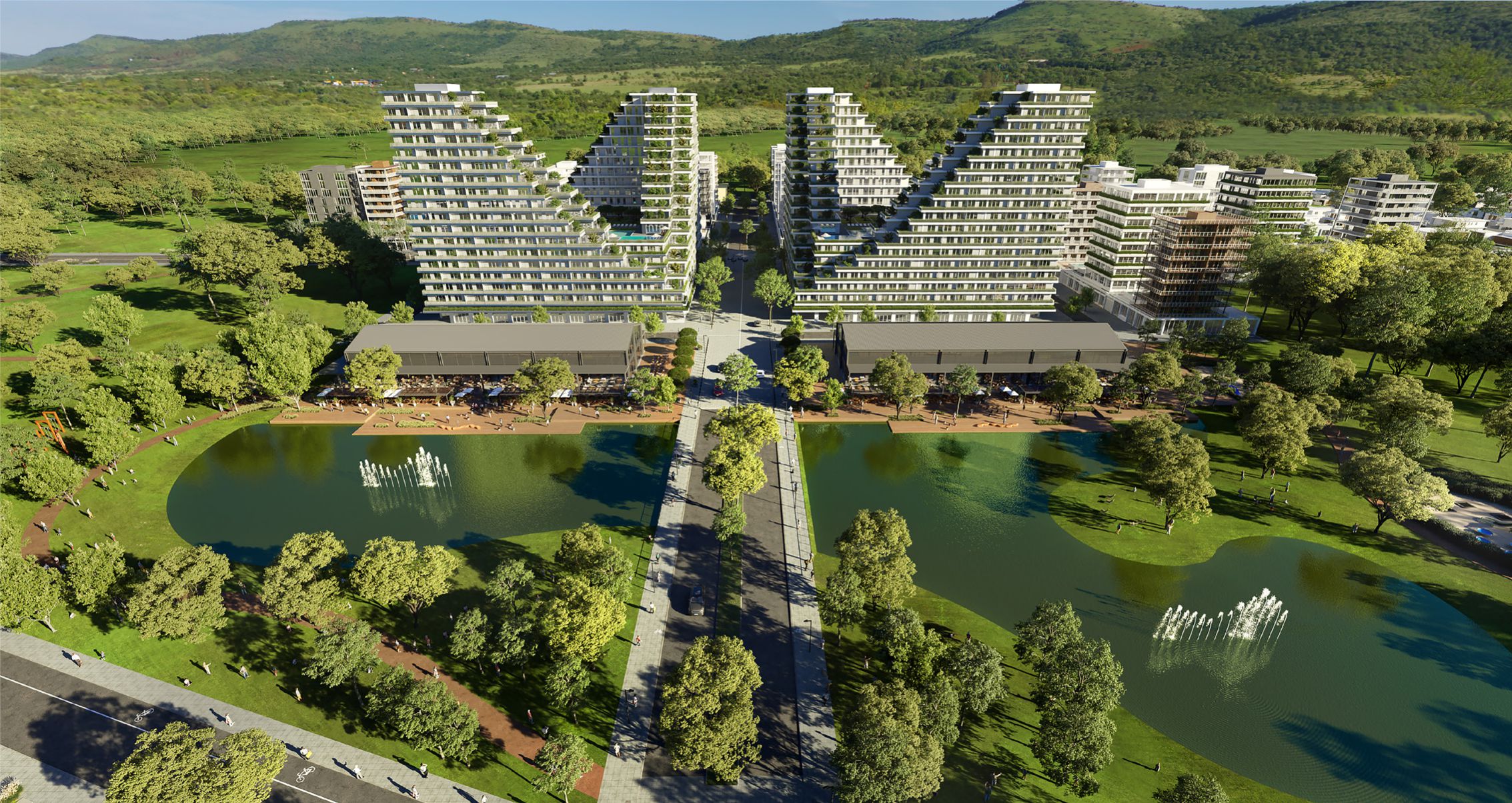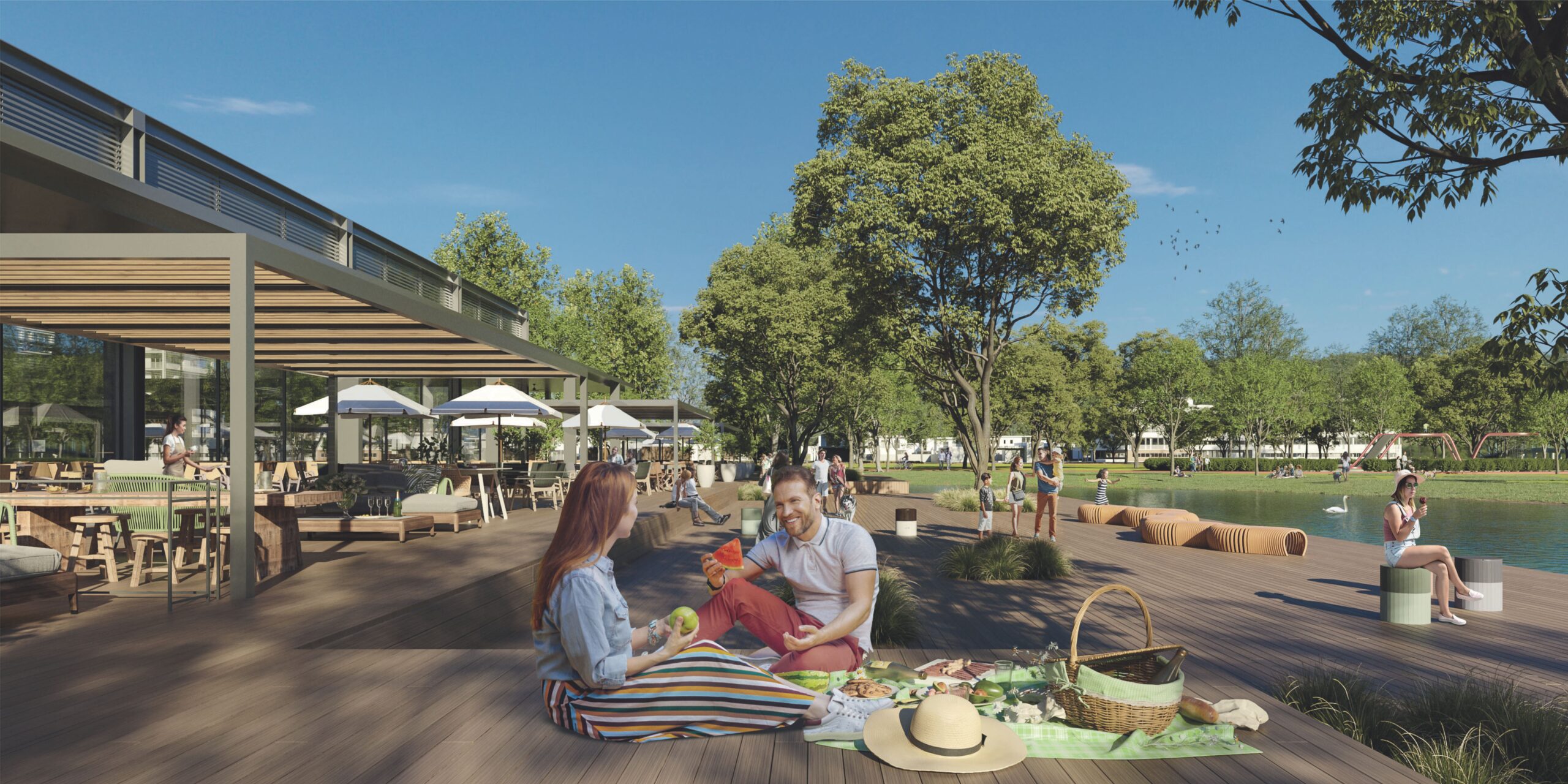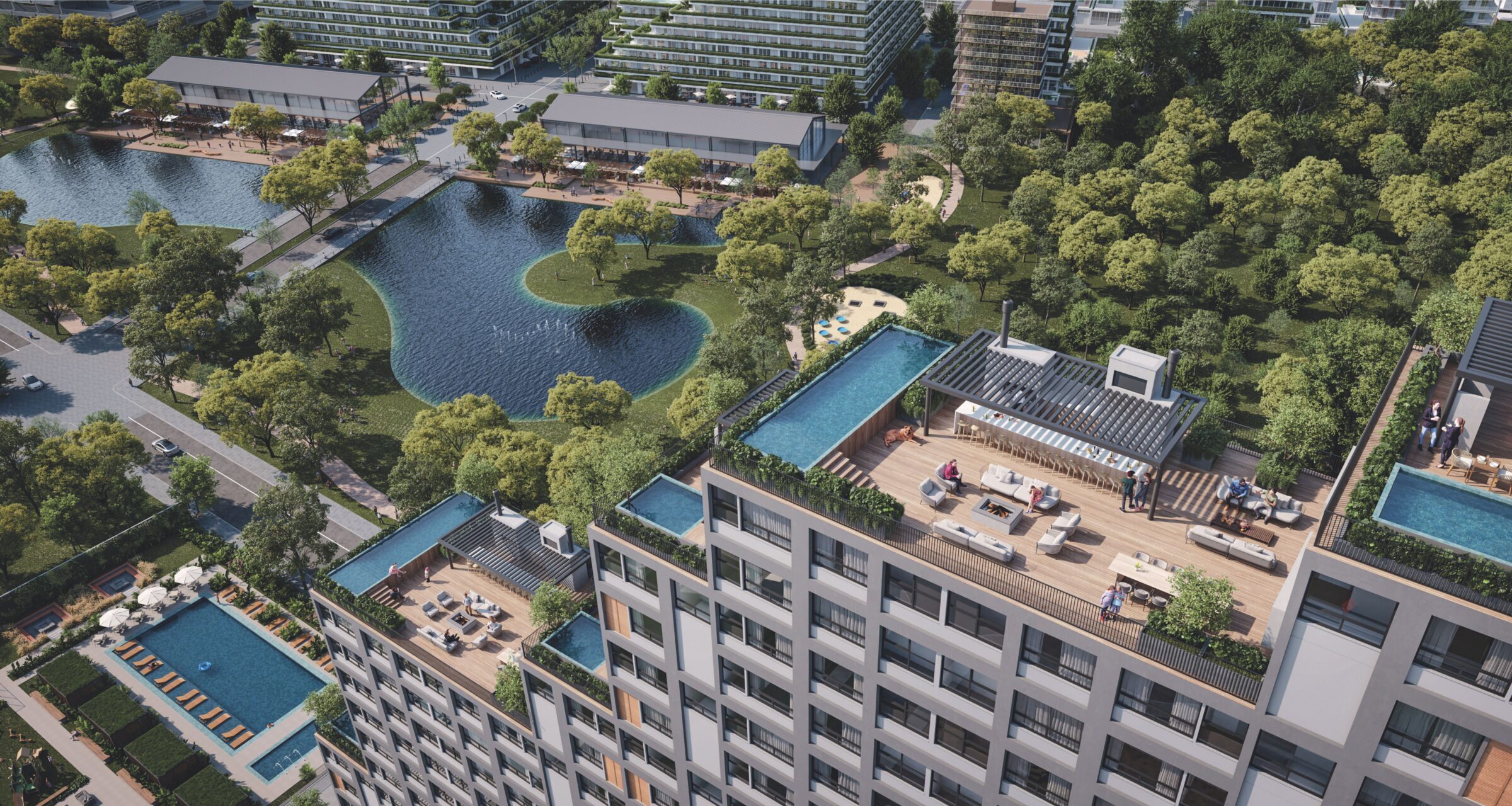 Mais de 230 mil m² de área verde com parques, lagos, pistas de caminhada e praças de lazer.
